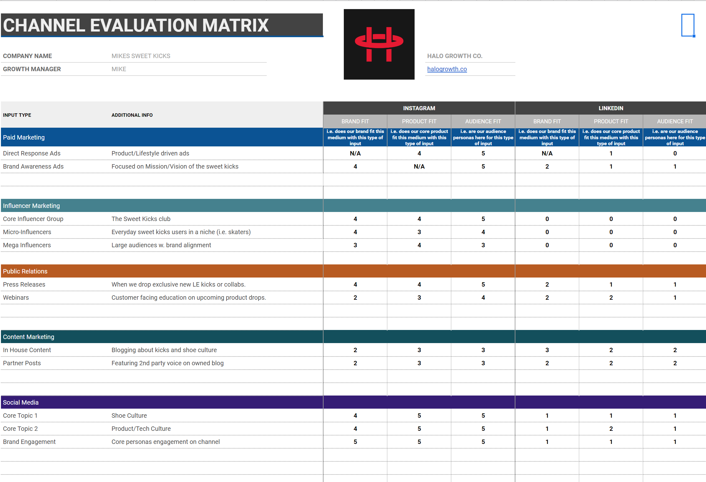 Channel Evaluation Matrix by Halo Growth Co.