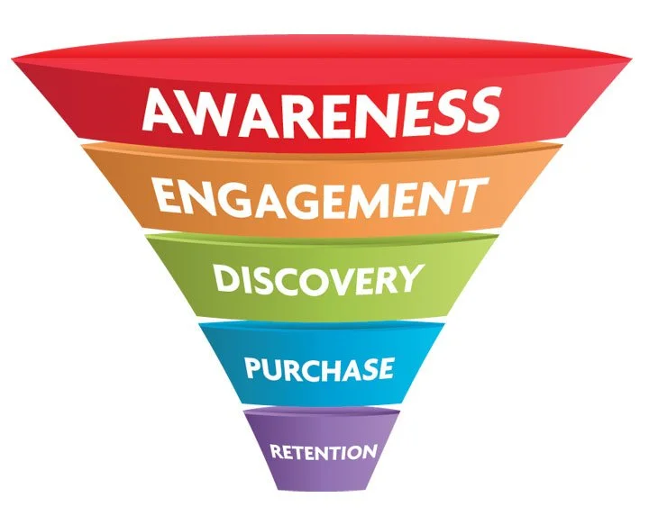 Sales channels, marketing channels, and paid media can all be considered linear inputs, and often follow the operational guidance of a traditional “marketing funnel” (below).